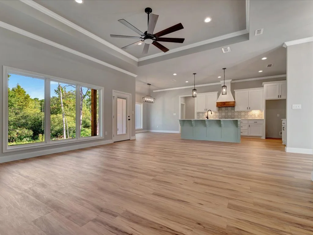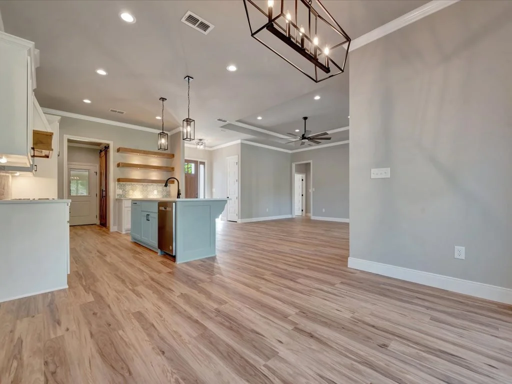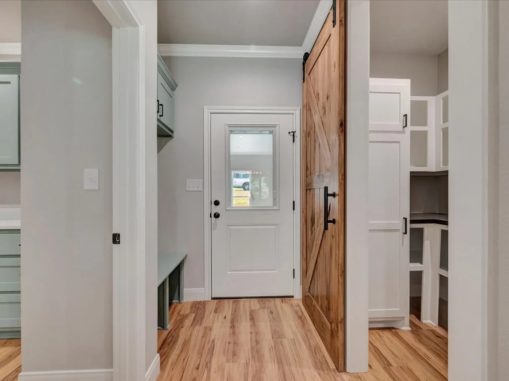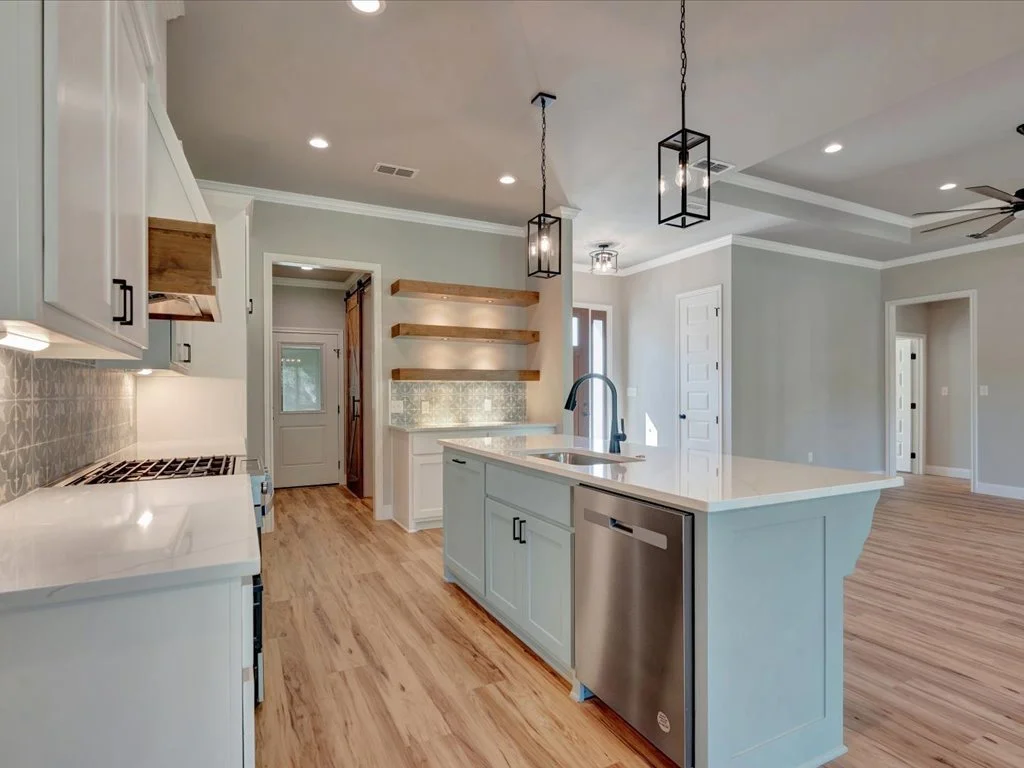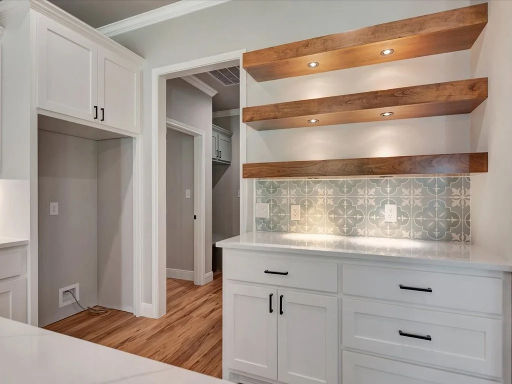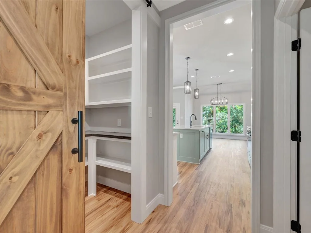 Enjoy serene views of Shadowood Lake from the covered back porch and beautifully maintained landscaping complete with new grass and a full sprinkler system. Inside, you’ll find an inviting open-concept layout featuring three bedrooms and two bathrooms, highlighted by natural elements and stylish design touches throughout. The kitchen is a showstopper with a coffee bar and floating shelves, plus a spacious walk-in pantry accented by a sliding barn door. The huge laundry room offers convenient access to the primary closet, while the primary suite itself boasts tray ceilings, a luxurious soaking tub, and a custom-tiled shower. With thoughtful details in every corner, this home perfectly blends comfort and sophistication.