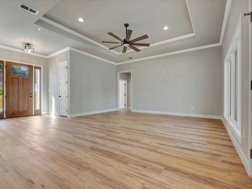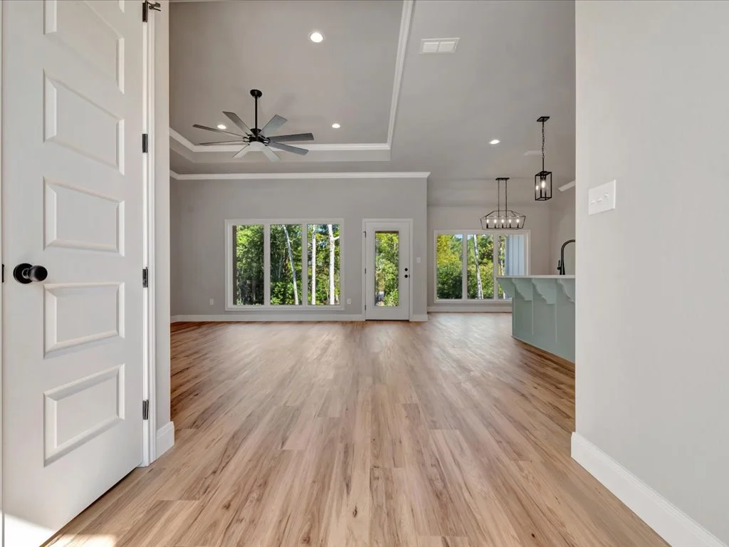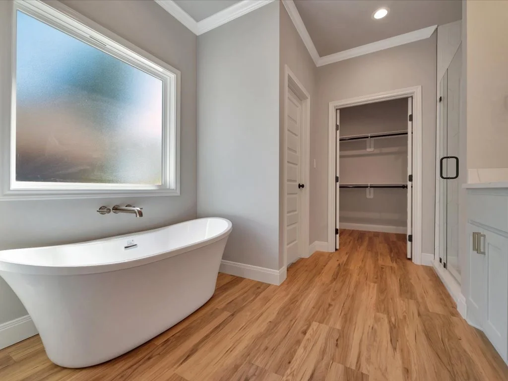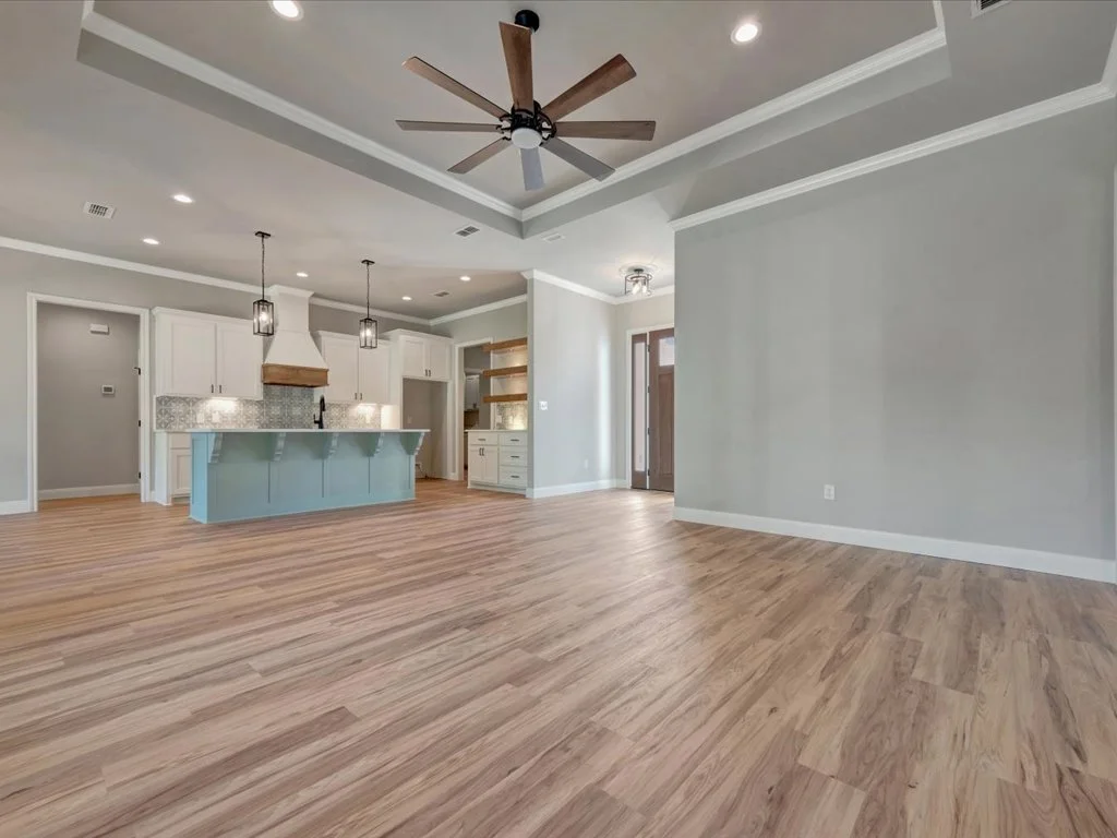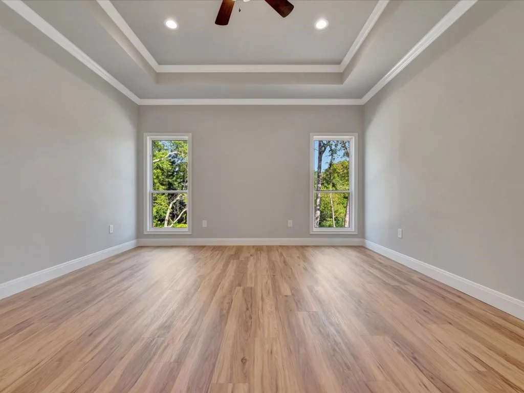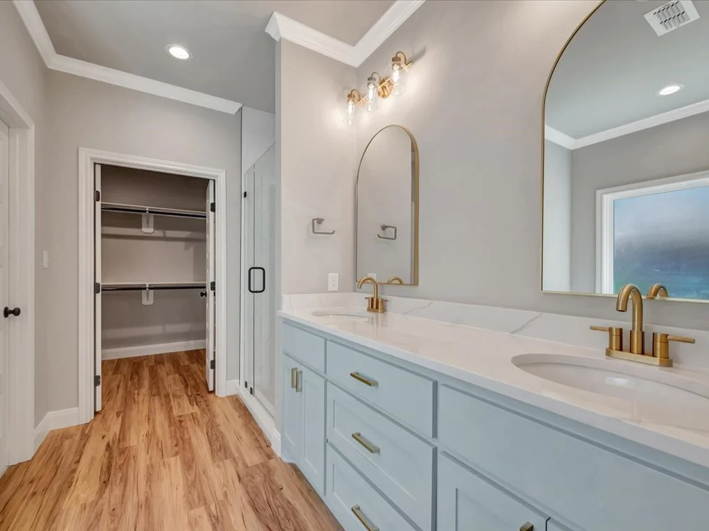 Enjoy serene views of Shadowood Lake from the covered back porch and beautifully maintained landscaping complete with new grass and a full sprinkler system. Inside, you’ll find an inviting open-concept layout featuring three bedrooms and two bathrooms, highlighted by natural elements and stylish design touches throughout. The kitchen is a showstopper with a coffee bar and floating shelves, plus a spacious walk-in pantry accented by a sliding barn door. The huge laundry room offers convenient access to the primary closet, while the primary suite itself boasts tray ceilings, a luxurious soaking tub, and a custom-tiled shower. With thoughtful details in every corner, this home perfectly blends comfort and sophistication.
